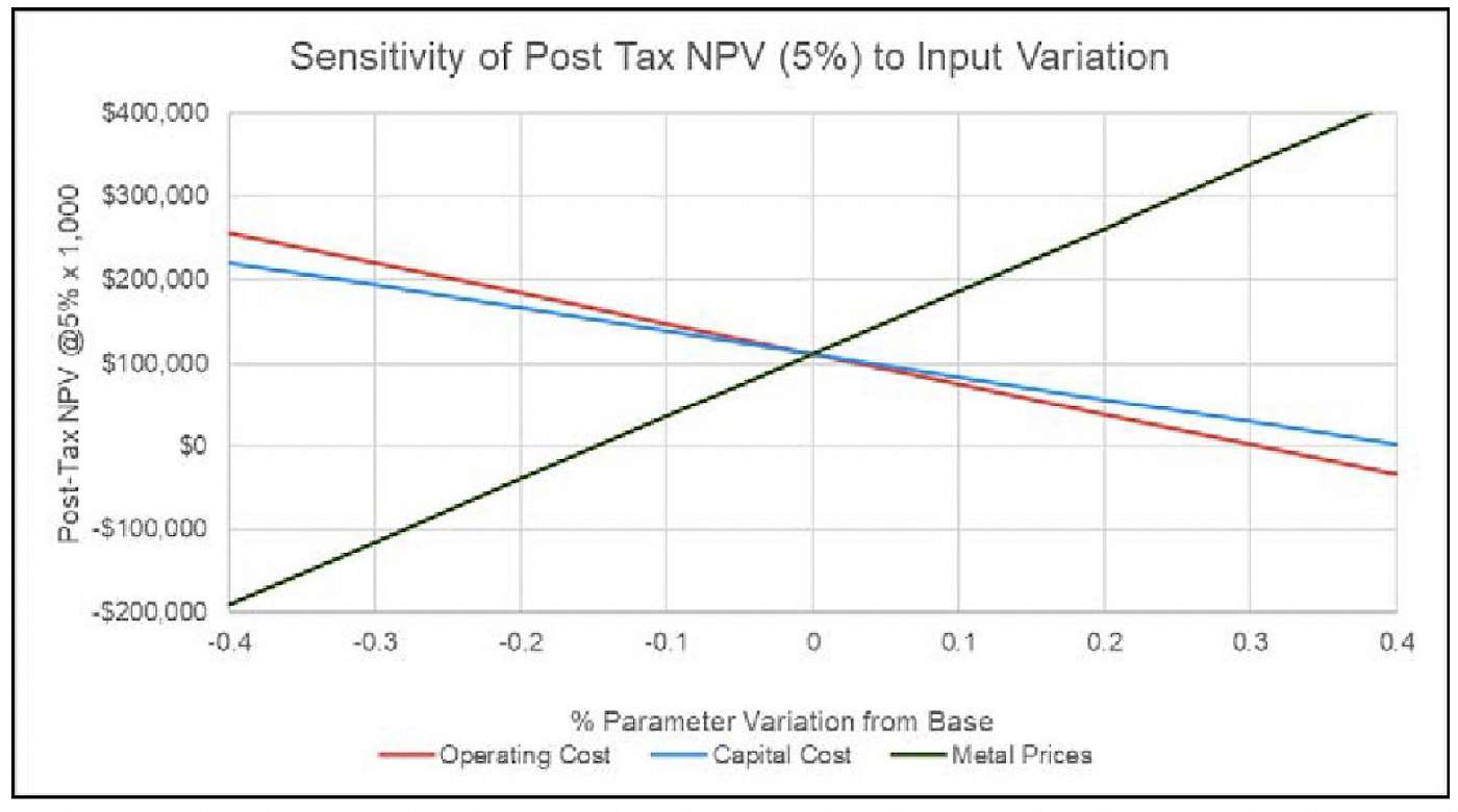Post-Tax NPV (5%): Sensitivity to OPEX, CAPEX and Metal Prices